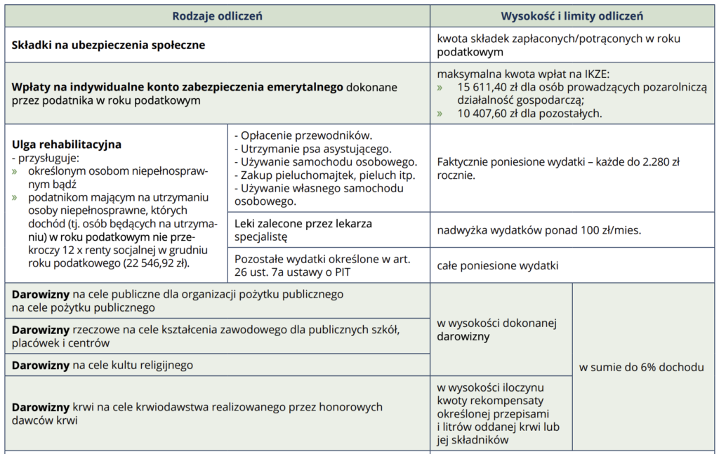 ODLICZENIA OD DOCHODU